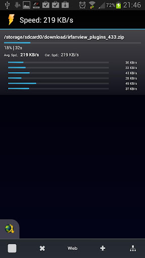 FasterDownloads es un gestor y acelerador de descargas que evita la limitación de Android durante la descarga de archivos y le da un impulso de velocidad muy necesario cuando se activa la descarga multihilo .